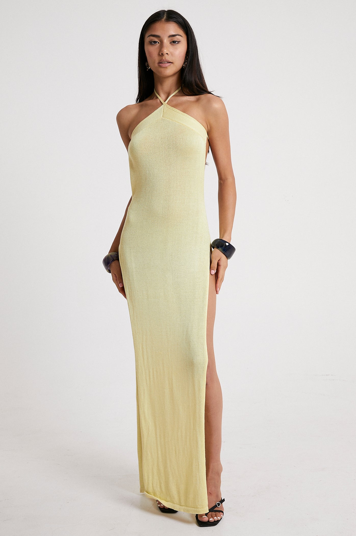 Make a statement in the SOLEIL RESORT halter maxi dress where timeless elegance meets modern sophistication. The striking cross halter neckline frames your shoulders beautifully, while the flowing lightweight knit fabric skims your curves for a naturally elongated look. The strategic high side slit reveals just enough to keep things intriguing and dynamic. Designed for those who appreciate understated luxury, this dress transitions effortlessly from beachside gatherings to intimate evening affairs. Invest in a piece that combines versatility with undeniable style your go-to dress for every memorable vacation moment.